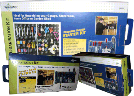 Showing multiples sides and various angles, the box for this home organization kit was created specifically for a large chain store in the UK (note, Organisation is NOT a typo!).