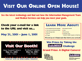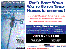 Full size for each poster is approximately 8 feet wide! The posters were mixed and matched in various throughways before and during the event to remind people to stop by the booth and visit the web site.
